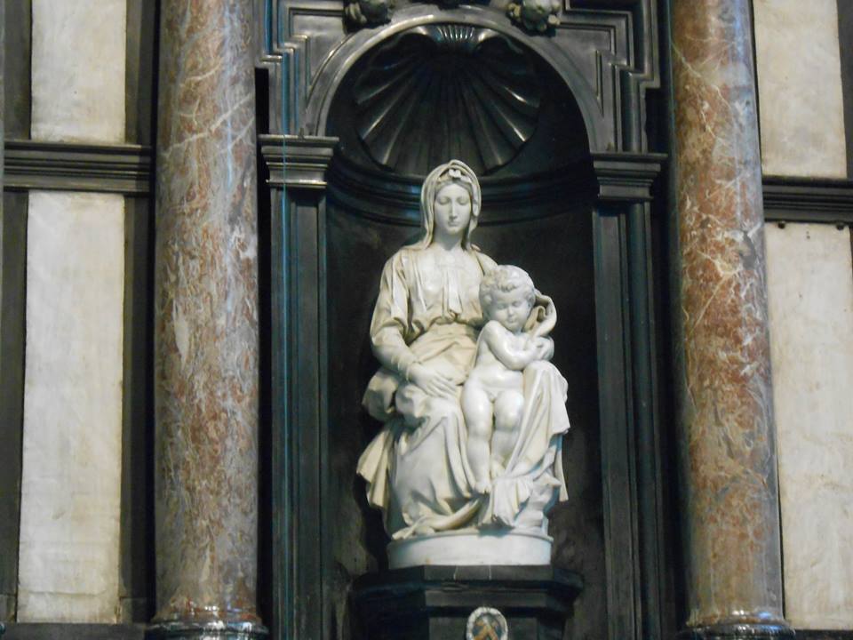 Within the altarpiece of the Church of Our Lady in Bruges, Belgium there is a renowned sculpture of the Madonna and Child by Michelangelo. For two Euros, you may see it for yourself. One rather remarkable part of this experience is just how cold it is within this marble space, cold enough that you can see your breath on the air, and for the guard stations to be equipped with heat lamps. Yet, this was not my immediate line of thinking. Nor was it the beauty of the church or Michelangelo’s marble. In fact, my bizarre train of thought—which I later divided into three interwoven sections—was as follows: